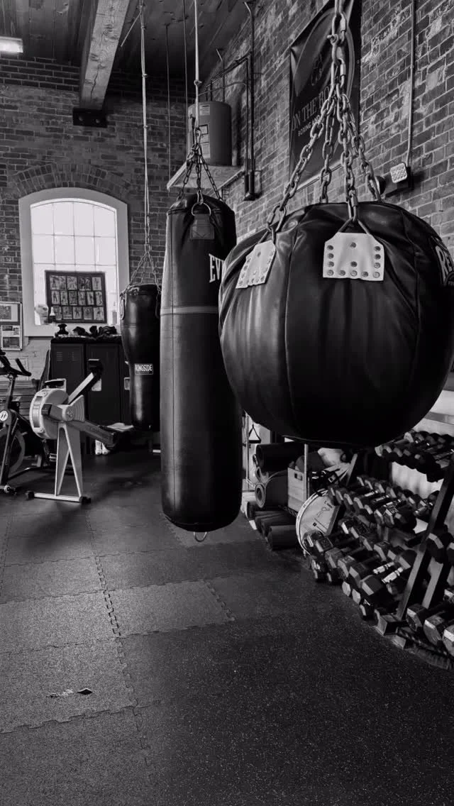 We have a full-size boxing ring, an assortment of heavy and speed bags, strength equipment, an outdoor patio, and large garage doors we open in the warmer months.